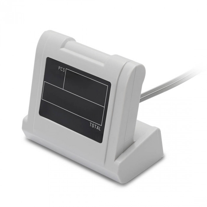 Аксессуар не займет много места на столе оператора. Выносной дисплей подключается к счетчику купюр через совместимый разъем. Покупать кабель для подключения не понадобится: он входит в комплект.