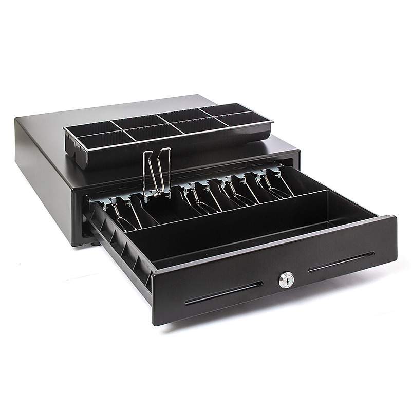 POScenter 16MK - классический механический денежный ящик, размеры которого позволяют использовать его как в небольших розничных магазинах, так и в довольно крупных супермаркетах. Металлический корпус обеспечивает надежную защиту денег от влияния внешней среды, а механический замок разработан по особой технологии, защищающей от взлома. 5 отделений для купюр со стальными зажимами и 8 отсеков для монет достаточно, чтобы разместить довольно большие суммы и быстро найти деньги для сдачи или пересчитать и подготовить выручку.
