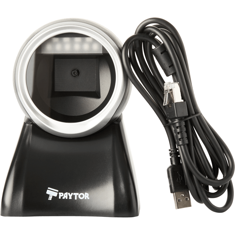 Проводной настольный 2D-сканер PayTor GS-1118 легко и быстро сканирует все виды печатных штрих-кодов, а также штрих-коды на экранах мобильных телефонов. Стильный дизайн устройства отлично вписывается в интерьер, компактный размер — экономит место в кассовой зоне, а автоматический режим сканирования — повышает эффективность работы.